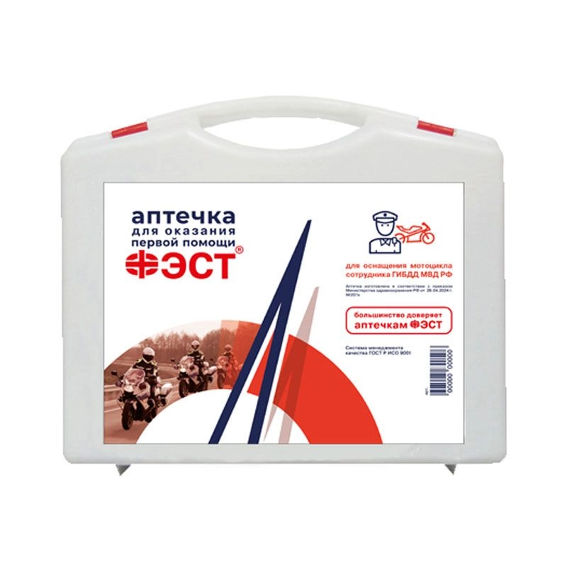 Аптечка и укладки для оказания первой помощи с применением медицинских изделий сотрудниками полиции предназначена для оснащения мотоцикла сотрудника ГИБДД МВД РФ. Комплектация соответствует требованиям Приказа Минздрава РФ №207н от 26.04.2024 г. Изделие доступно оптом, поставляется напрямую от производителя с возможностью доставки по всей РФ.Характеристики