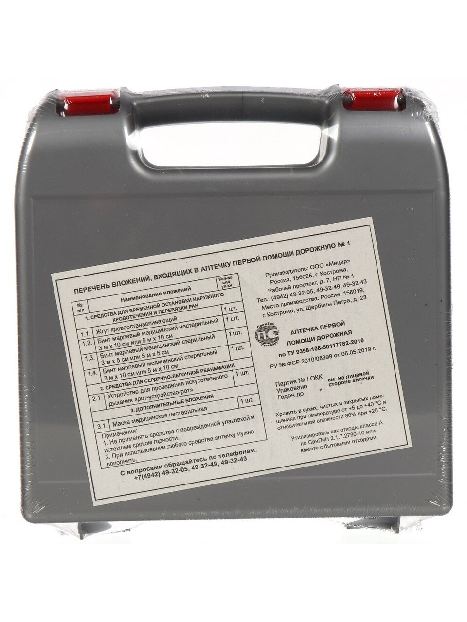 Аптечка первой помощи дорожная №1 "Мицар" (футляр 01) предназначена для оказания первой помощи пострадавшим в ДТП в пределах компетенции водителей. Также может использоваться при травмах, не связанных с эксплуатацией автомобиля. Товар доступен к заказу оптом от производителя с доставкой по всей РФ.