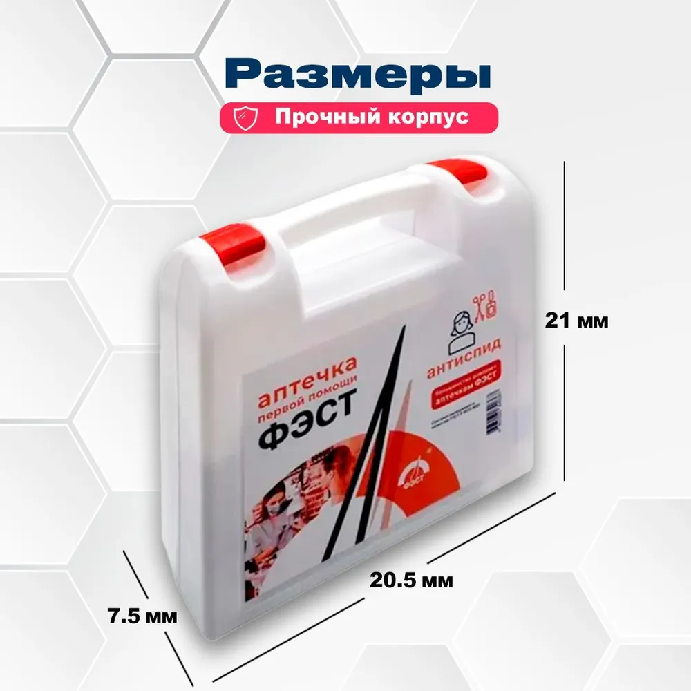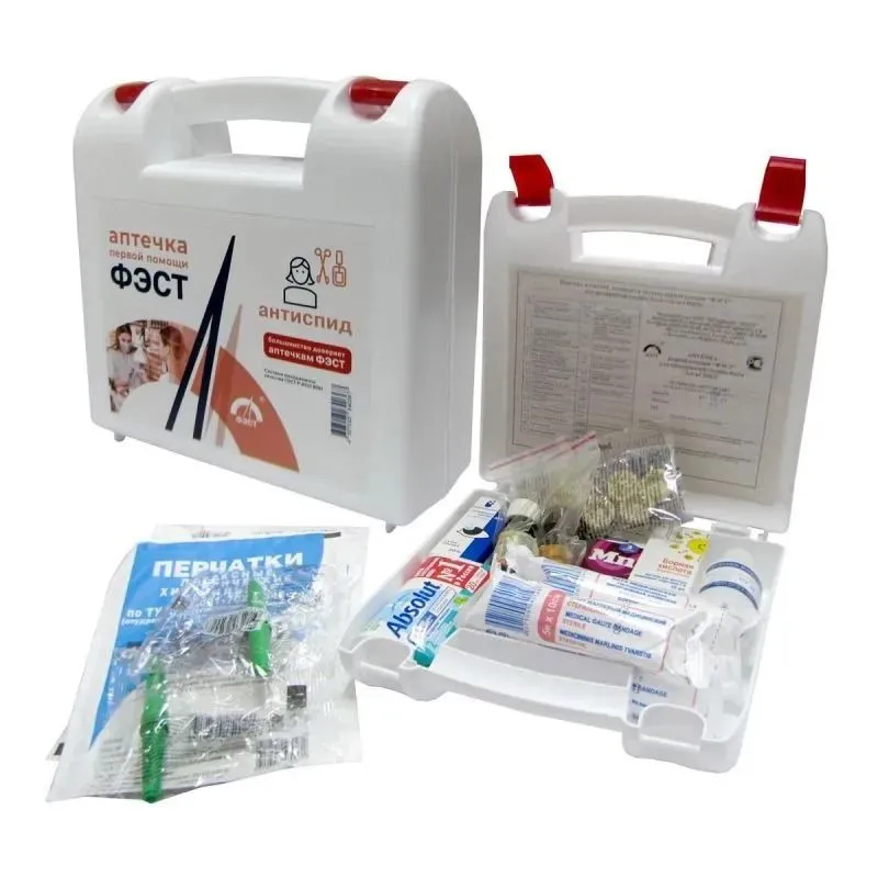 Аптечка первой помощи "ФЭСТ" для предприятий служб быта АнтиСПИД предназначена для экстренной профилактики при контакте с биологическими жидкостями и направлена на предотвращение профессионального заражения. Аптечка изготовлена в соответствии с СанПиН 2.1.2.2631-10 (постановление №59). Товар доступен к заказу оптом от производителя с доставкой по всей РФ.Характеристики
