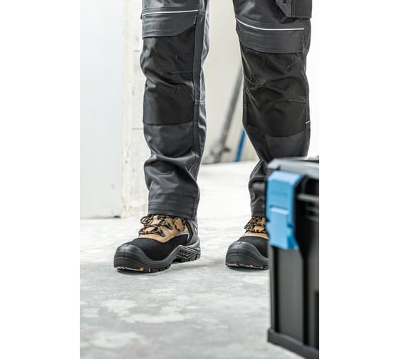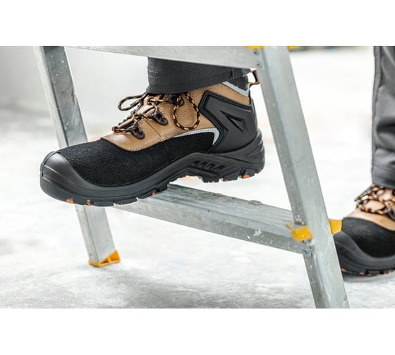 Ботинки рабочие MEPPEN S3L SR бежевый/черный Högert артикул HT5K591 соответствуют классу безопасности S3L стандарта ISO 20345:2011. Модель оснащена композитным подноском, кевларовой антипрокольной стелькой и противоскользящей подошвой SR. Конструкция из композиционной кожи устойчива к воздействию кислот и щелочей. Ботинки доступны к заказу оптом от производителя с доставкой по всей РФ.Характеристики