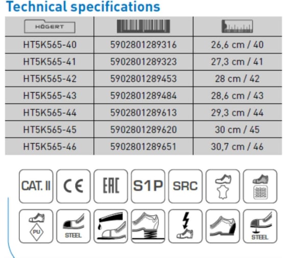 Особенности: антистатические свойства, стойкость к дизельному топливу и маслам, усиленная пяточная часть, поглощение энергии в пятке