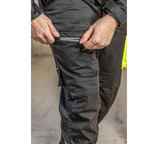 Брюки рабочие мужские эластичные черные REETZ Högert (арт. HT5K825) представляют собой модель для активной работы. Изделие изготовлено из эластичной ткани TWILL плотностью 260 г/м² с усилениями из материала Oxford 600D и тройными швами. Конструкция включает светоотражающие элементы, систему Pre-Bent Leg, регулировку WAIST SYSTEM, 9 карманов и возможность удлинения штанин. Соответствуют стандарту EN ISO 13688. Доступны для заказа оптом от производителя с доставкой по всей РФ.Характеристики