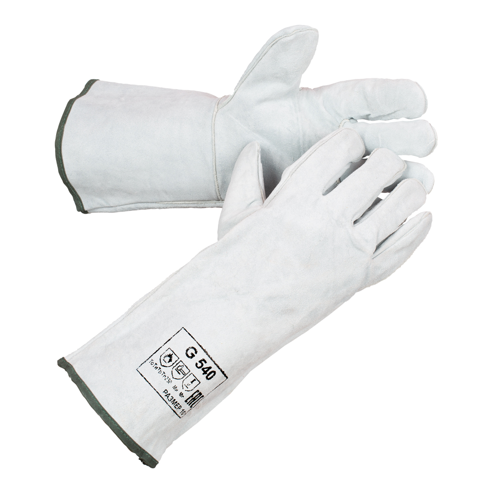 Краги G540 — защитные перчатки для сварщика. Модель серого цвета, размер 10. Изготовлены из кожевенного спилка, обеспечивают защиту от высоких температур, искр и брызг расплавленного металла. Эластичный материал сохраняет свободу движения пальцев. Высокие показатели стойкости к истиранию, раздиру и проколу (4 класс). Длинные раструбы (360 мм) хорошо закрывают кисть, удобны для надевания поверх защитного костюма.
