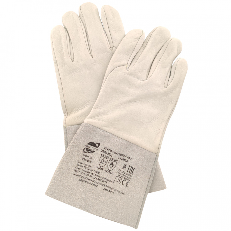Полное наименование: Краги сварщика ARCTICUS® арт. 3200, кисть из гладкой кожи наппа серого цвета, защитная крага из спилка серого цвета, прошиты огнеупорной нитью KEVLAR, без подкладки. Длинная крагаРазмерный ряд (РР перчатки): 10-11