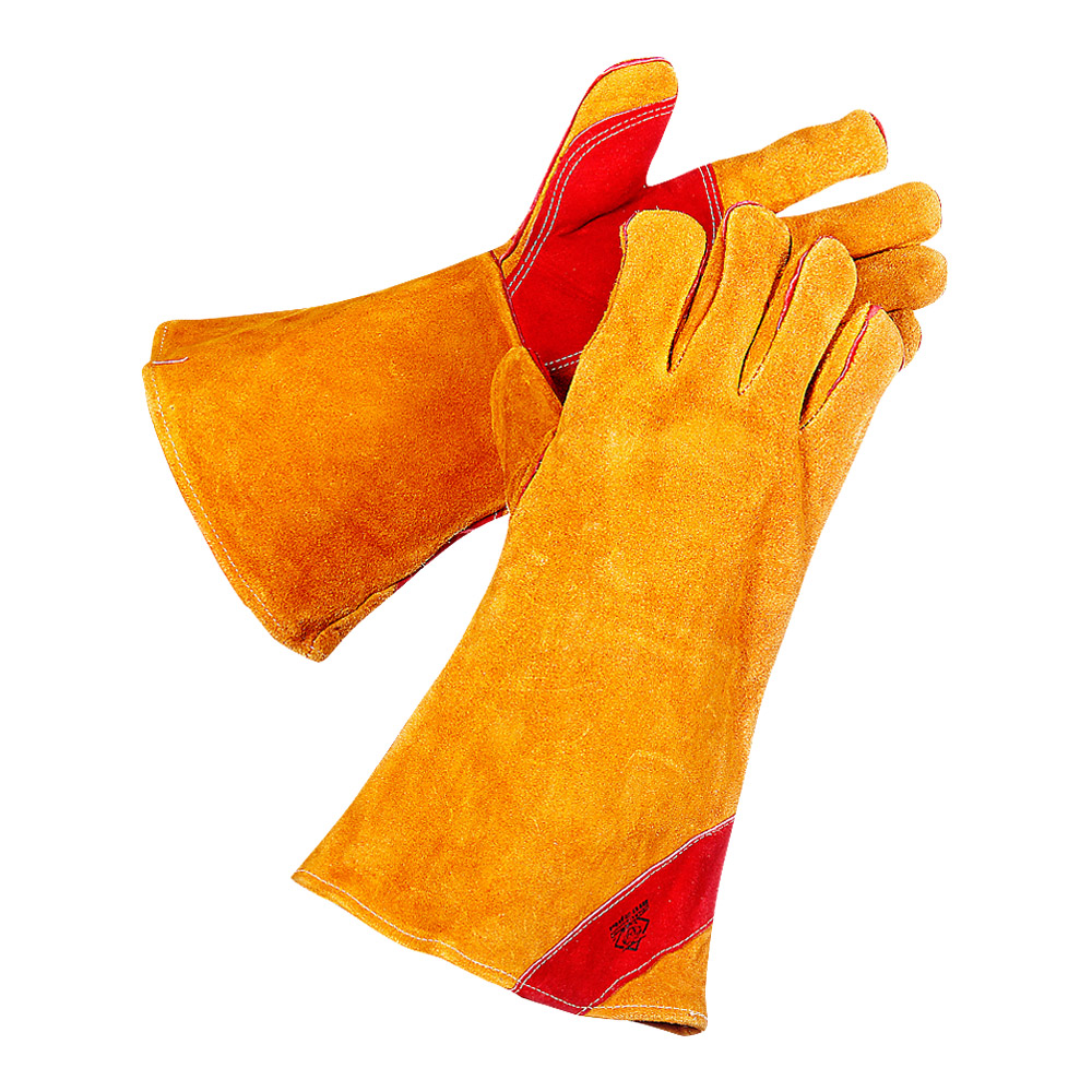 Краги российского производства из отечественного сырья предназначены для сварочных работ. Основа изготовлена из премиального воловьего спилка категории А (однородной, ровной, «неворсистой» поверхности, без пороков) толщиной 1,2–1,3 мм. Тыльная сторона перчаток выполнена из цельного спилкового лоскута. Швы краг двойные, прошиты термостойкой нитью Kevlar® и по периметру изделия усилены спилковыми вставками. Для дополнительной прочности в зоне ладонной части и большого пальца расположена усиливающая накладка из спилка. Увеличенный раструб краг (23 см) позволяет удобно надевать их на костюм сварщика. Подкладка из нетканого материала обеспечивает дополнительную прочность и комфорт за счёт абсорбции влаги.
