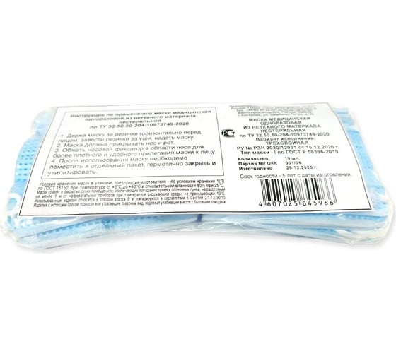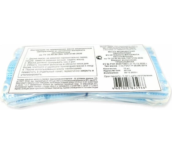 Маска медицинская одноразовая из нетканого материала нестерильная (№10) штрихкод 4607025845966