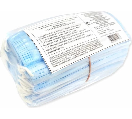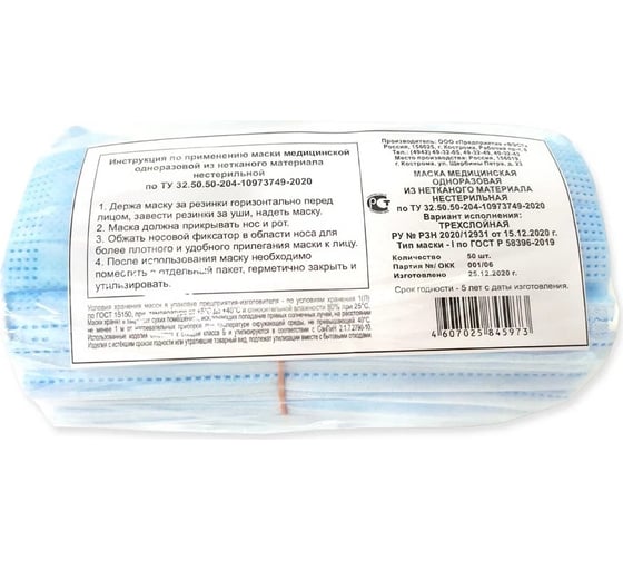 Маска медицинская одноразовая из нетканого материала нестерильная (№50) штрихкод 4607025845973