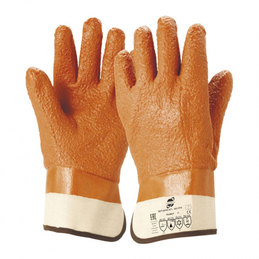 Нефтеморозостойкие перчатки Arcticus 2603 STW представляют собой перчатки с полным ПВХ покрытием для работ при низких температурах. Изделие поставляется оптом от производителя с доставкой по всей РФ. Основа перчаток выполнена из хлопчатобумажного трикотажа типа «Джерси». Нанесено полное однослойное рельефное покрытие из морозостойкого ПВХ оранжевого цвета методом облива. Конструкция включает пенополиуретановую изоляцию и ворсистую утепляющую подкладку, манжет выполнен в виде жесткой краги из парусины. Длина изделия составляет не менее 26,5 см.Характеристики