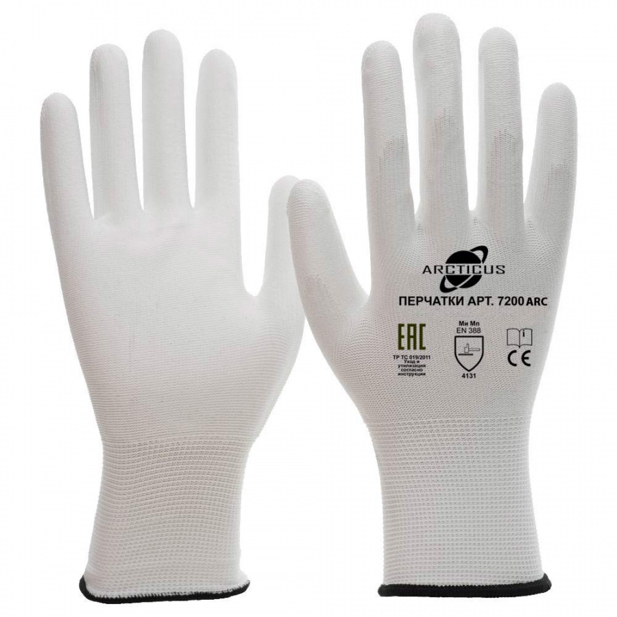 Нейлоновые перчатки с полиуретаном Arcticus 7200 ARC представляют собой бесшовные трикотажные перчатки базовой защиты. Изделие поставляется оптом от производителя с доставкой по всей РФ. Основа перчаток выполнена бесшовным способом вязки 13G из нейлона белого цвета. На ладони и кончиках пальцев нанесено однослойное гладкое покрытие из полиуретана белого цвета методом облива для улучшенного сцепления. Манжет представляет собой трикотажную резинку.Характеристики