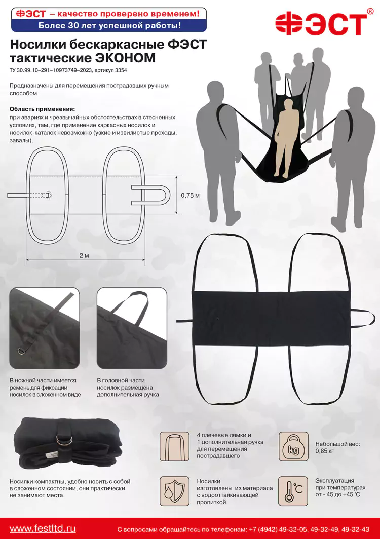 Носилки бескаркасные «ФЭСТ» тактические (эконом) штрихкод 14607025848131