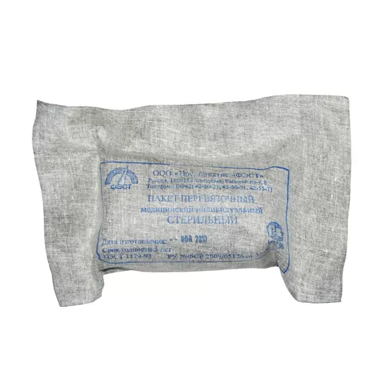 Пакет перевязочный индивидуальный ИПП-1 стерильный предназначен для наложения первичных повязок на раны. Комплект состоит из бинта, двух ватно-марлевых подушечек и безопасной булавки, упакованных в герметичный чехол. Изделие соответствует ГОСТ и имеет гарантийный срок хранения. Продукция поставляется оптом от производителя с доставкой по всей РФ.