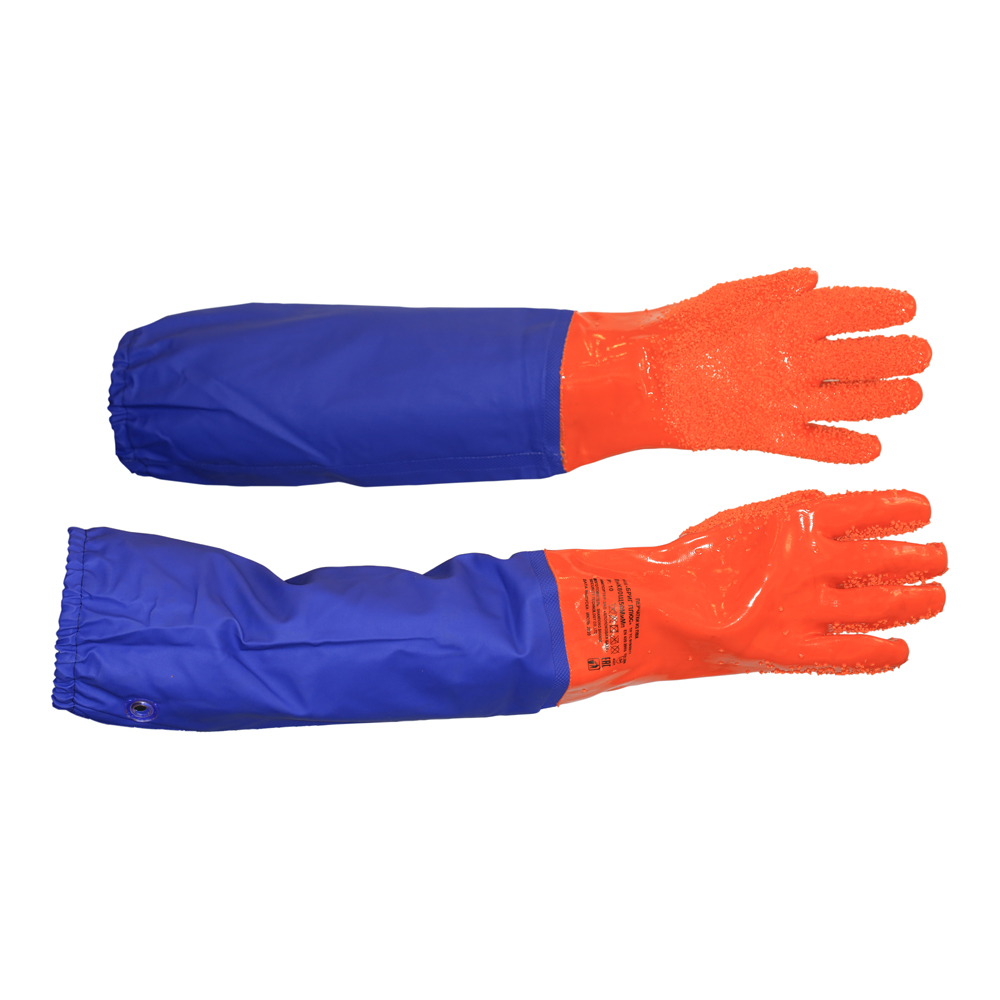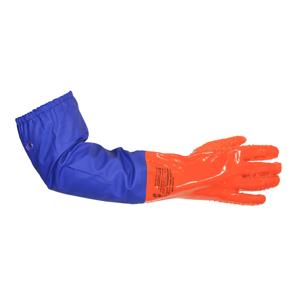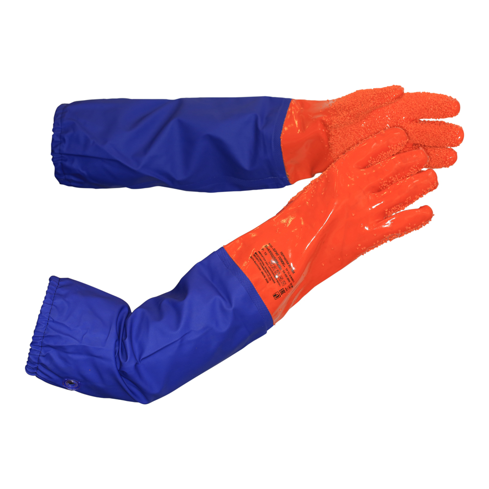 Перчатки БРИГ ПЛЮС с нарукавниками (код по каталогу: 136-0399-01) — водонепроницаемые перчатки с нарукавниками из ПВХ. Обеспечивают защиту от растворов кислот (до 80%), щелочей (до 50%), механических воздействий и общепроизводственных загрязнений. На ладонной части есть резиновая крошка для повышения надёжности захвата влажных предметов. Материал подкладки — полиэстер. Длина — 650 мм, толщина — 1,3 мм. Доступные размеры: 10 и 11.