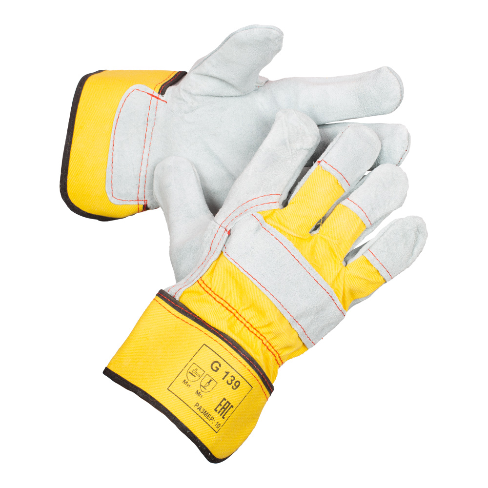 Перчатки ФОРС G139 (код по каталогу: 136-0080-01) — универсальные перчатки из спилка категории АВ и хлопчатобумажной ткани. Подкладка из 100% полиэстера. Цвет: серый с жёлтым, длина: 270 мм, размер: 10. Благодаря усиленному наладоннику из спилка обладают хорошей устойчивостью к истиранию и порезу. Защита от механических воздействий и общепроизводственных загрязнений. Рекомендованы для ремонтных, строительно-конструкторских, сборочно-монтажных работ, технического обслуживания машин и механизмов. Защитные свойства по ГОСТ EN 388-2019: 4244B. Стойкость к истиранию — 4 (8000 циклов), стойкость к порезам — 2 (2,5 показатель), сопротивление раздиру — 4 (75 Ньютонов), сопротивление проколу — 4 (150 Ньютонов), стойкость к порезам (EN ISO 13997) – В (5 Ньютонов).