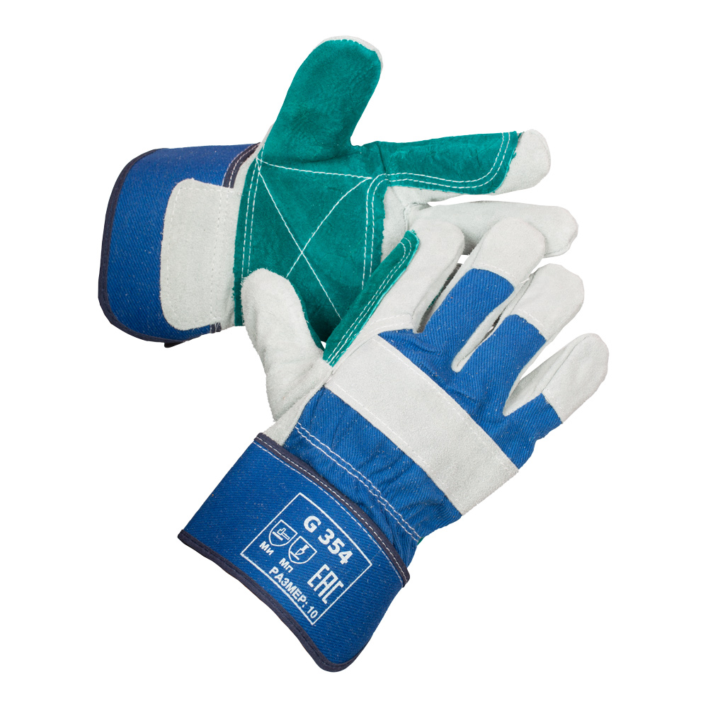 Перчатки G354 (код по каталогу: 136-0029-01) изготовлены из волового спилка и 100% хлопка, подкладка — из 100% полиэстера. Имеют усиленную накладку на ладонной части, большом и указательном пальцах, которая увеличивает стойкость к механическому воздействию и продлевает срок службы изделия. Защищают от общих производственных загрязнений и механического воздействия (истирания, проколов, порезов). Рекомендованы для ремонтных, строительно-конструкторских, сборочно-монтажных работ, технического обслуживания машин и механизмов.