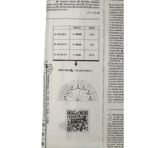 Химическая защита по EN ISO 374-1: тип B (J6 K6 L3)