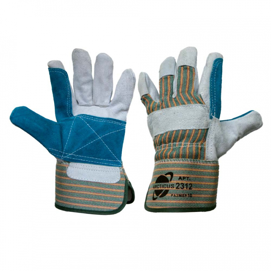 Полное наименование: Перчатки комбинированные из спилка KPC серого цвета, с полосатой х/б тканью, усиленные на ладони, большом и указательном пальце доп.слоем спилка бирюзового цвета, с подкладкой. МаРазмерный ряд (РР перчатки): 10-11