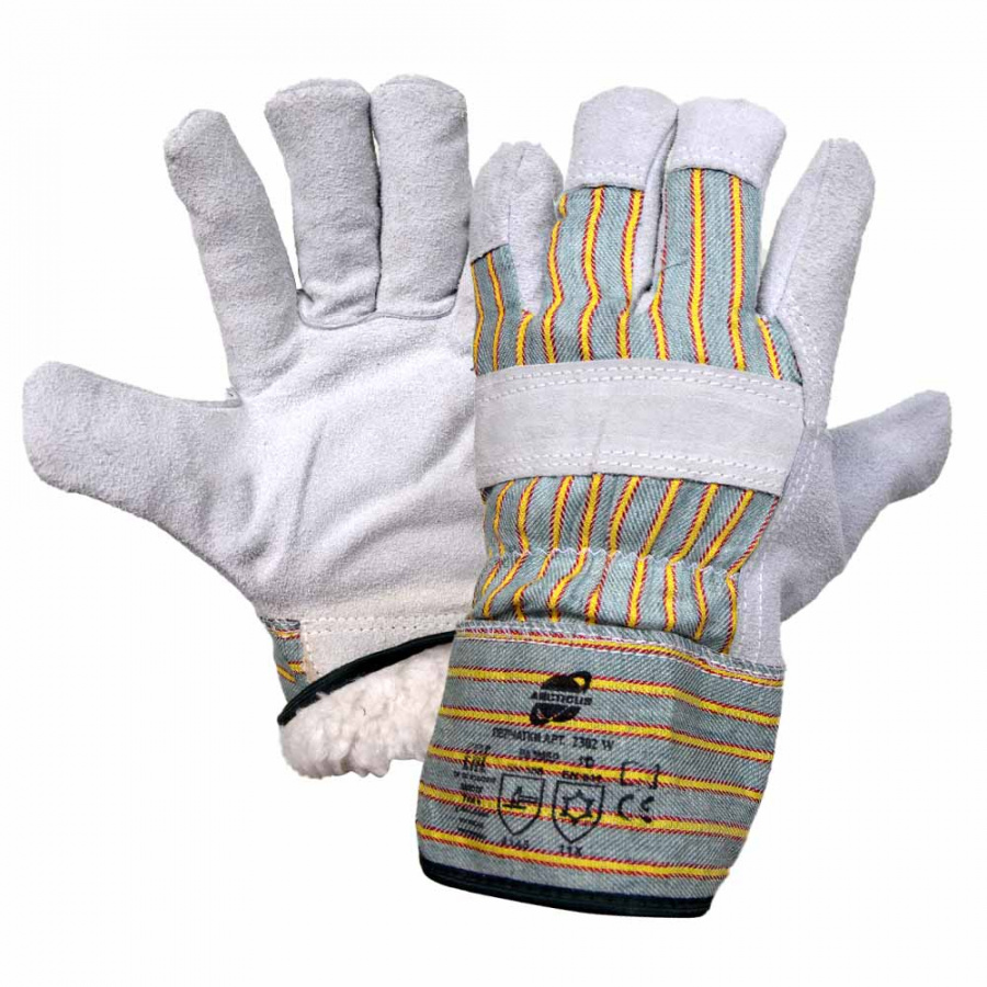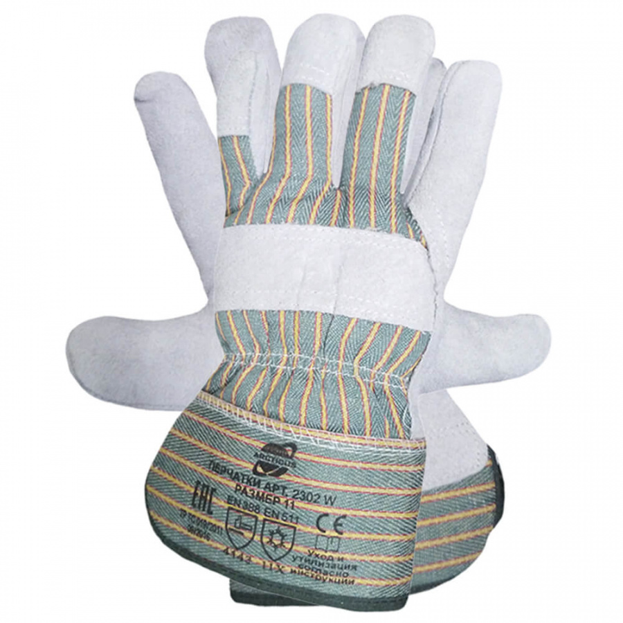 Перчатки комбинированные со спилком КРС утепленные Arcticus 2302 W представляют собой зимнюю модель для работ в холодных условиях. Изделие поставляется оптом от производителя с доставкой по всей РФ. Перчатки комбинированного типа выполнены из серого говяжьего спилка и хлопчатобумажной ткани с зеленой полоской, оснащены двойными швами. Конструкция утеплена искусственным белым мехом, манжет выполнен в виде жесткой краги из парусины. Длина изделия составляет примерно 27 см.Характеристики