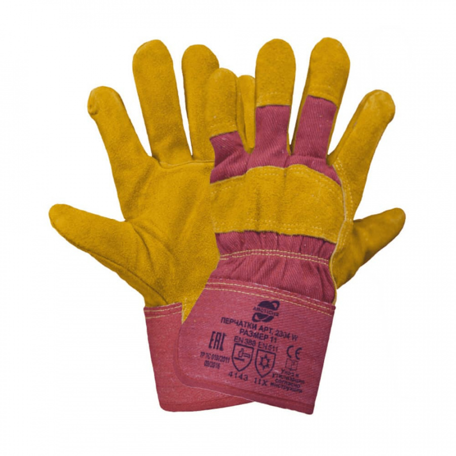 Полное наименование: Перчатки зимние комбинированные из спилка КРС желтого цвета А класса, с красной х/б тканью. Утепленные мутоном. Манжет-жесткая крага. Двойные швы. 10/100, Arcticus, арт. 2304 WРазмерный ряд (РР перчатки): 10-11