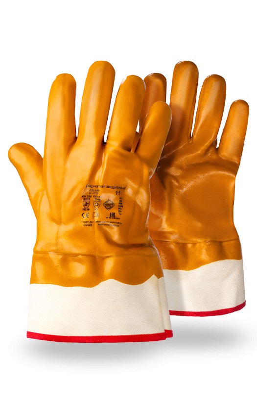 Особенности модели: перчатки пятипалые с крагой, со сплошным поливинилхлоридным морозостойким (до -40°С) покрытием, на текстильной основе. Перчатки производятся на кроеной основе из полиэстера с утепленной подкладкой из хлопчатобумажного трикотажного полотна с начесом, дублированного пенополиуретаном.
