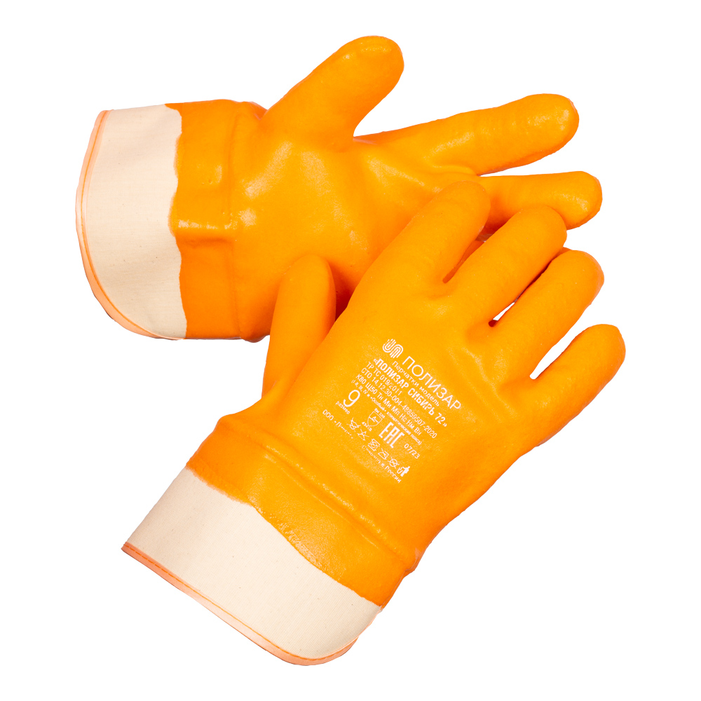 Перчатки ЛИКОМ ПОЛИЗАР СИБИРЬ 72 (код по каталогу: 136-0435-01) — морозоустойчивые перчатки для широкого спектра работ. Специальная технология ПВХ покрытия Mollis придаёт изделию гибкость, эластичность и повышенную износостойкость в условиях пониженных температур. Перчатки обеспечивают хороший захват на сухих и промасленных поверхностях и гарантируют защиту от сырой нефти, масел, нефтепродуктов, кислот и щелочей.