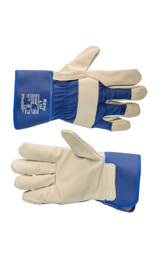 Материал: основа – плотная смесовая ткань, рабочая поверхность ладони и пальцев – прочная и мягкая свиная кожа особой выделки.