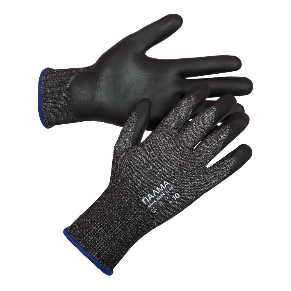 Перчатки ПАЛМА АРМА ПЛЮС 12-06 (код по каталогу: 136-0510-01) — вязаные перчатки с основой из HPPE, нейлона, стекловолокна и спандекса. Манжета — трикотажная, класс вязки — 13. Покрытие — вспененный нитрил на ладонной части. Цвет — чёрный, длина — 220–280 мм.