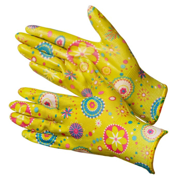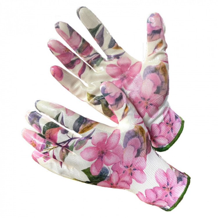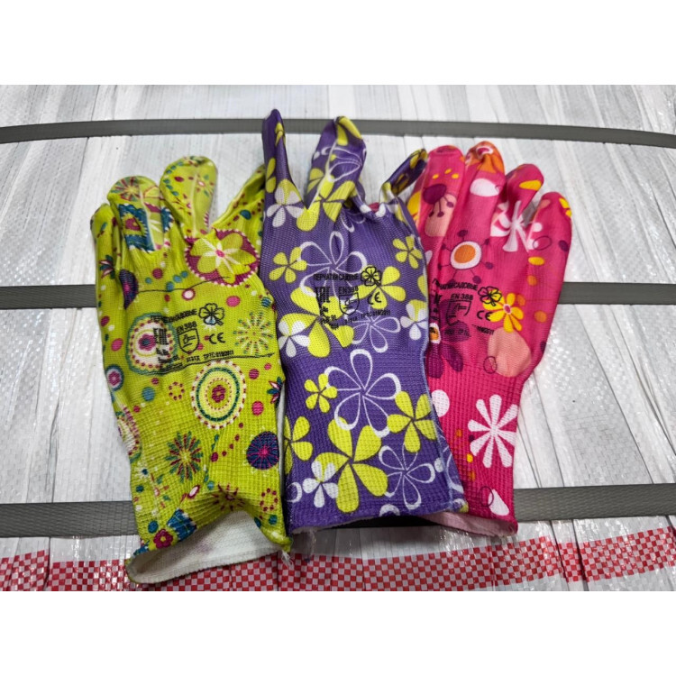 Перчатки САДОВЫЕ нейлоновые с нитриловым покрытием — продукция от производителя, доступная оптом с доставкой по всей РФ . Изделие представляет собой женские садовые перчатки из прочного нейлона с ярким дизайном. Модель отличается повышенной плотностью вязки ( 13 класс ), хорошо тянется и плотно прилегает к рукам. Приятная на ощупь ткань не сковывает движений и сохраняет тактильную чувствительность пальцев. Прозрачное нитриловое покрытие защищает руки от натирания, порезов, загрязнения и намокания при работе с садовым инструментом и колючими растениями. Покрытие обладает антискользящим эффектом , что повышает безопасность и удобство при работе с инвентарём.