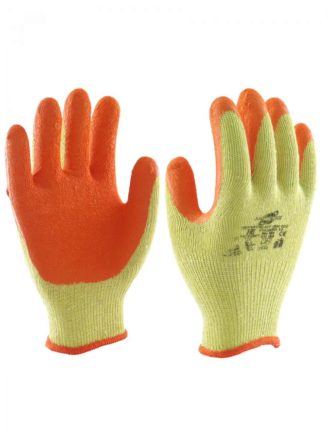Перчатки трикотажные хб/пэ с рельефным латексным покрытием Arcticus 2603 ECO представляют собой вязаные трикотажные перчатки. Изделие поставляется оптом от производителя с доставкой по всей РФ. Основа перчаток выполнена машинным способом из полиэфирных нитей 10G желтого цвета. На ладони и кончиках пальцев нанесено однослойное рельефное покрытие из оранжевого латекса методом облива для улучшенного сцепления. Манжета представляет собой трикотажную резинку.Характеристики