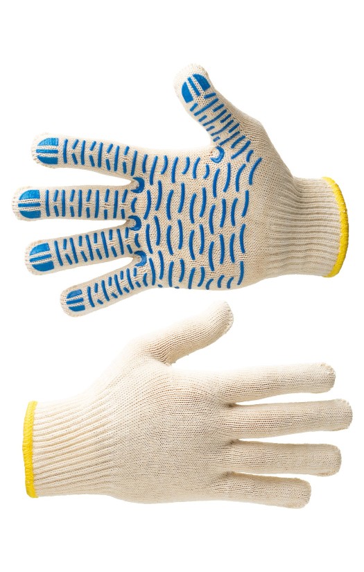 Особенности модели: плотные износостойкие трикотажные перчатки изготовлены из хлопкополиэфирной пряжи с высоким содержанием хлопка, что делает их более комфортными в носке. Обеспечивают хорошую чувствительность рук. Точечное ПВХ-покрытие ладони гарантирует надежный захват.