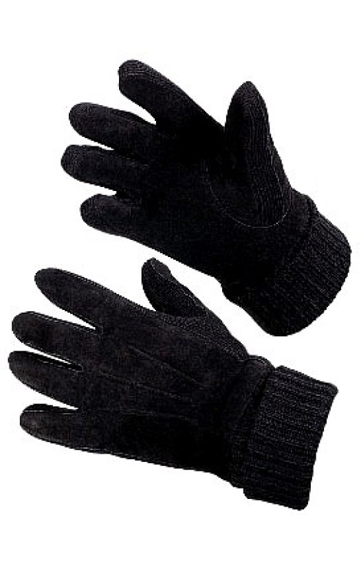Зимние перчатки. Изготовлены из вязаного трикотажа (100% акрил). Тыльная и ладонная части перчаток усилены накладками из кожевенного велюра толщиной 0,7–1,0 мм. Материал подкладки – флис.