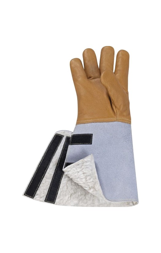 - Материал тыльной и ладонной частей – водонепроницаемая воловья кожа (TECHNICUIR) с алюминизированной полиэстеровой вставкой, устойчивой к жидкому азоту.