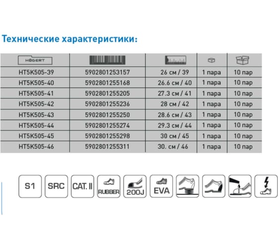 Особенности: антистатические свойства, стойкость к дизельному топливу и смазке, поглощение энергии в пяточной части, усиленная пяточная часть