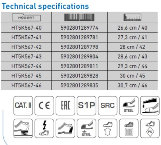 Стандарт: EN ISO 20344:2011, EN ISO 20345:2011, ТР ТС 019/2011
