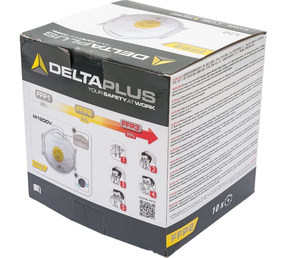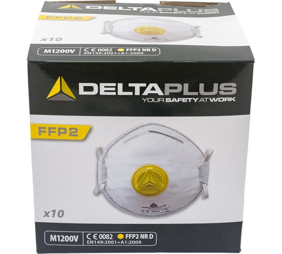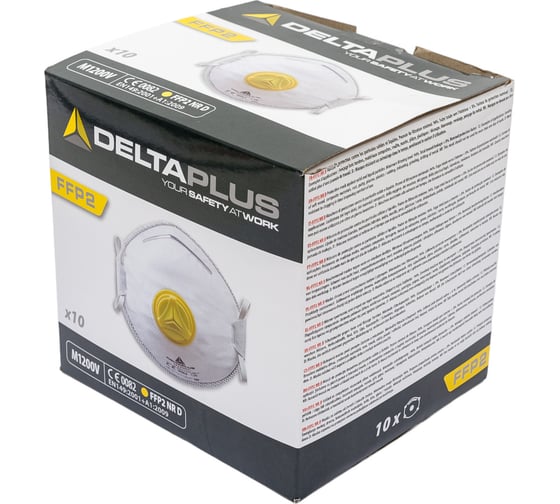 Респираторная маска с клапаном выдоха Delta Plus FFP2 M1200VC представляет собой одноразовую формованную полумаску для защиты органов дыхания от аэрозолей и пыли. Товар доступен для заказа оптом в упаковках по 10 штук непосредственно от производителя с возможностью доставки по всей РФ.Характеристики