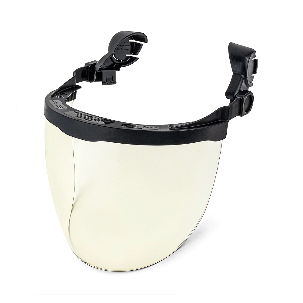 - Экран щитка изготовлен из прозрачного светло-жёлтого ударопрочного поликарбоната с двусторонним покрытием СтронГлас. Это покрытие устойчиво к запотеванию, истиранию и царапинам, что позволяет сохранять высокую функциональность даже при интенсивной эксплуатации, в том числе при работе с абразивами.