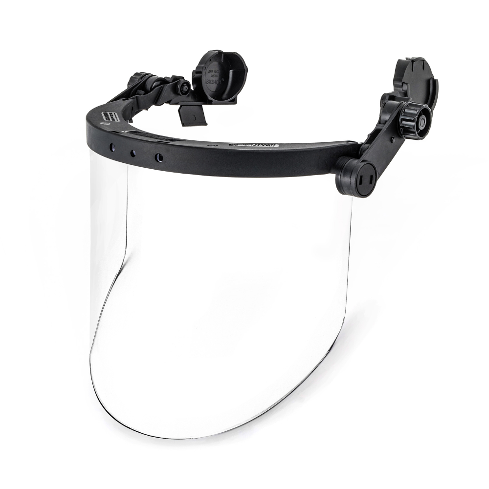 Цилиндрическая форма экрана с панорамным обзором позволяет сохранить широкий угол зрения, что особенно важно в условиях, когда требуется высокая концентрация внимания и быстрая реакция. Благодаря своим характеристикам, щиток может быть использован в различных отраслях, где существует риск механических повреждений лица и глаз: