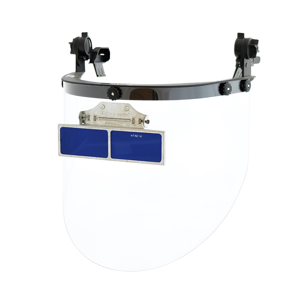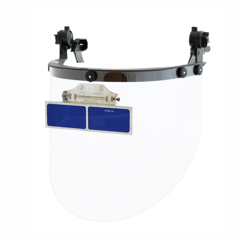 - в комплект входят щиток защитный лицевой с креплением на каску КБТ ВИЗИОН TITAN (арт. 04390) и козырьковые очки ОК3 (4–7) (арт. 10353) с прямым кронштейном;