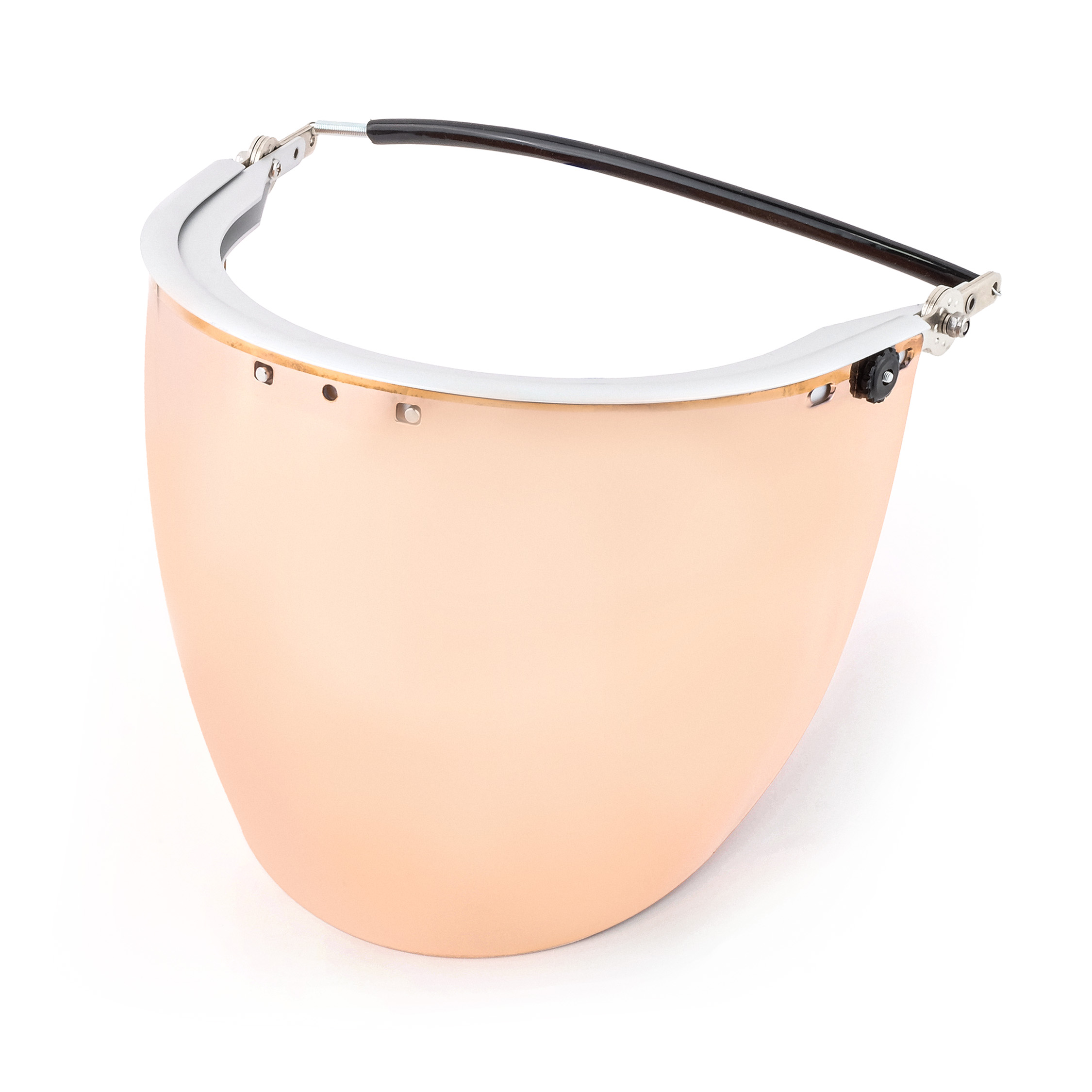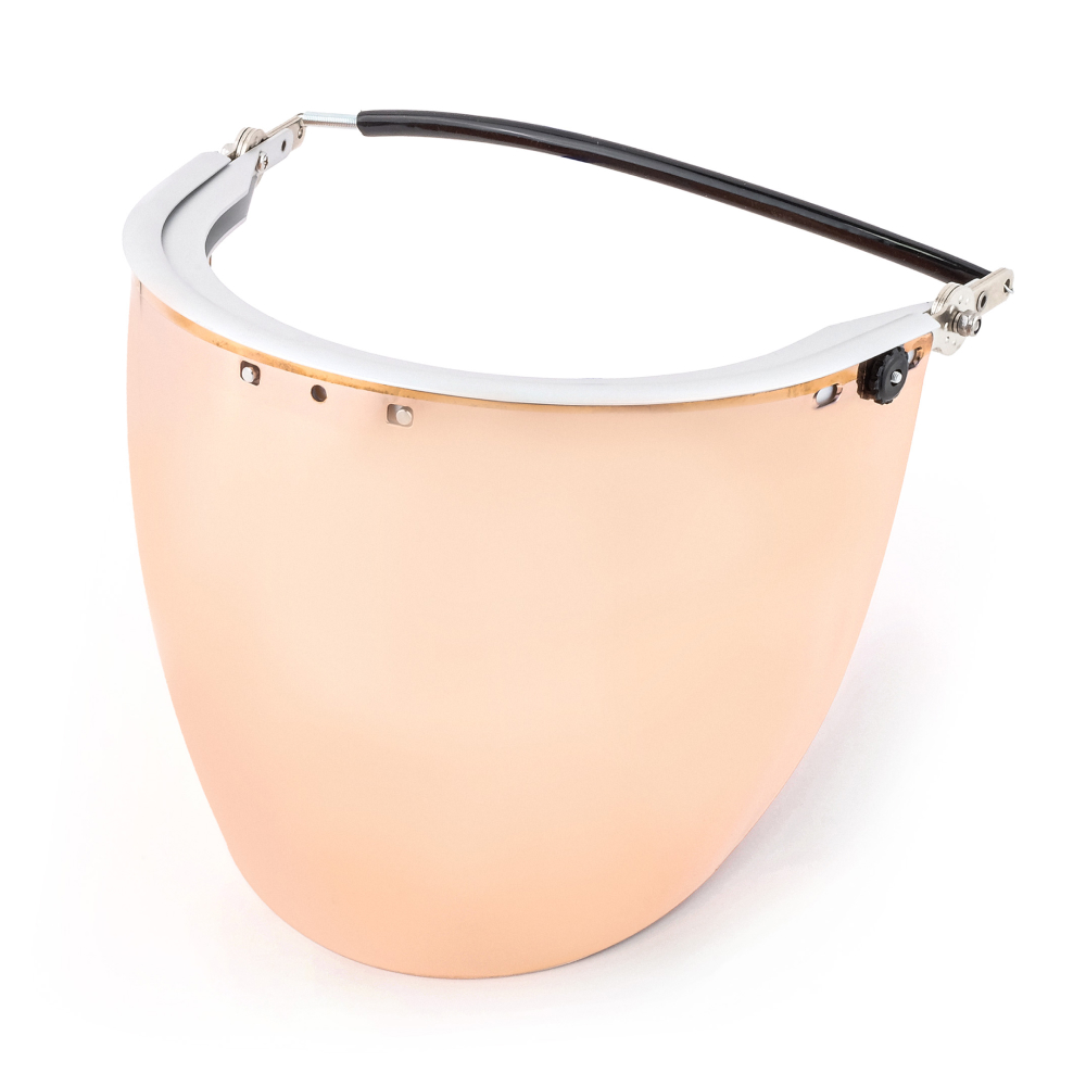 - металлическое крепление с пружиной — позволяет фиксировать щиток на каске и легко поднимать и опускать его;