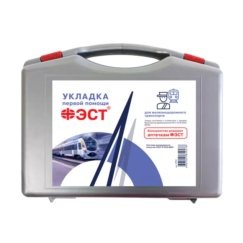 Укладка для оказания первой помощи с применением медицинских изделий предназначена для использования на железнодорожном транспорте при оказании услуг по перевозкам пассажиров. Артикул 3791 предназначен для оснащения поездов пригородного сообщения и вагонов пассажирских поездов дальнего следования и соответствует приказу Минздрава РФ №258н. Товар доступен к заказу оптом напрямую от производителя с доставкой по всей РФ.