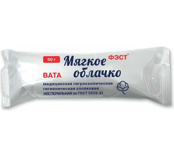 Вата медицинская гигроскопическая гигиеническая хлопковая нестерильная по ГОСТ 5556-81 50 гр. , арт. 2679