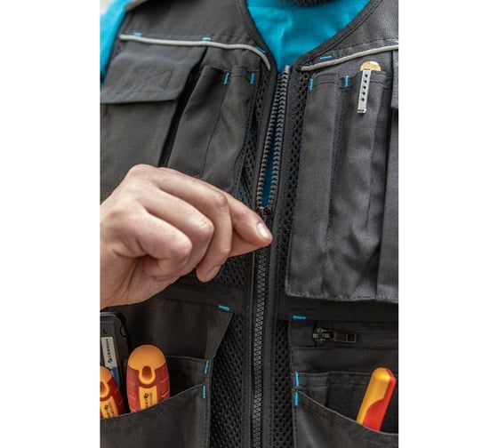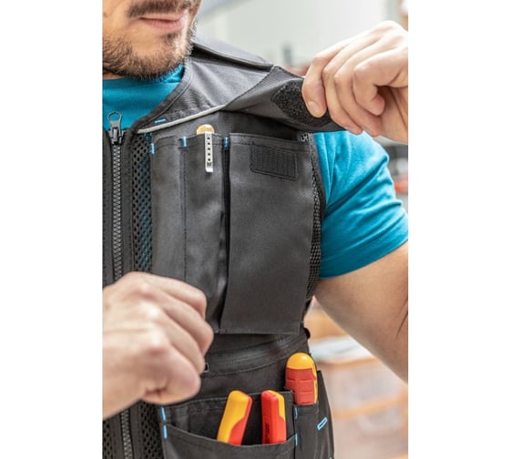 Конфигурация карманов: 2 кармана для телефона на липучке, 12 открытых карманов, 1 карман на молнии